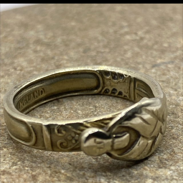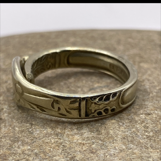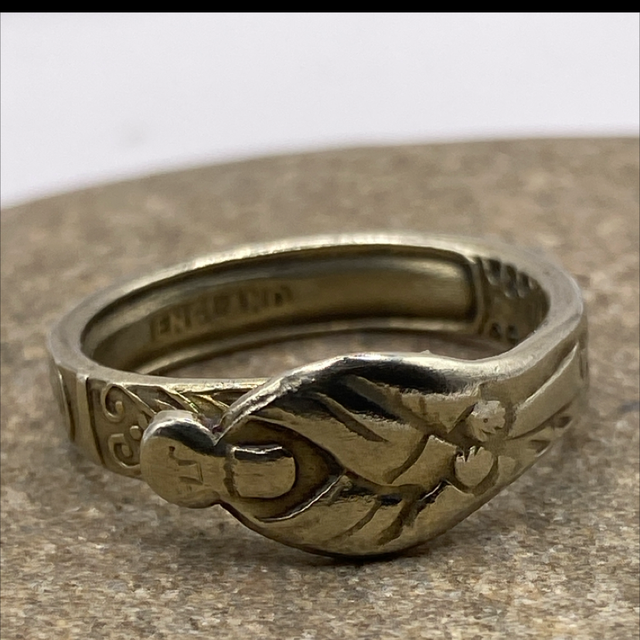 Kirriemuir, 1944 — The Knitter’s Break. Effie Boyd took in knitting to help make ends meet, her fingers aching by the time the clock crept near midnight. She’d stop for ten minutes, make a mug of Ovaltine, and stir it with her 1910 apostle spoon — a tiny reward, a pause no one else saw but her. Those ten minutes became sacred. She used them to plan, to dream, to count blessings instead of stitches. Work still filled the days, but life no longer felt like only work. Now made into a ring, the spoon honours the small boundary she made between effort and exhaustion — and how it kept her going.