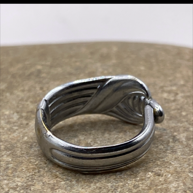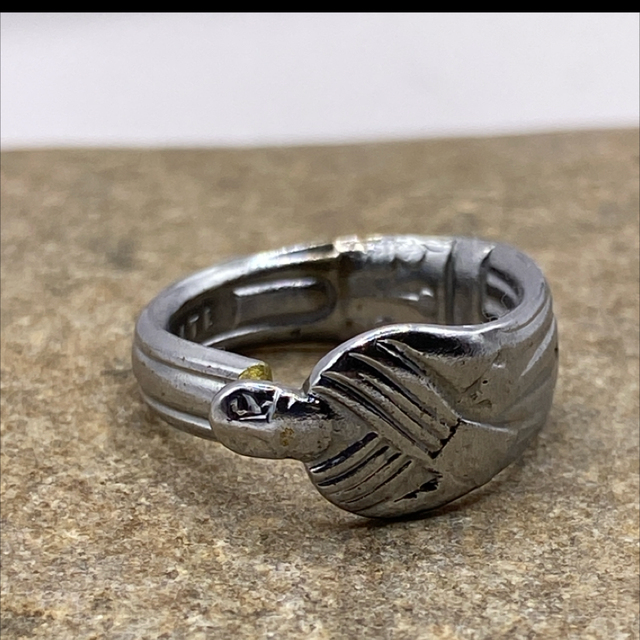 For three months straight, Angus MacKenzie’s catches were poor, and the house began to feel smaller under the weight of his silence. His wife, Mhairi, sat by the hearth each night, stirring lentil soup with her 1910 apostle spoon and refusing to mirror his despair. “The sea takes its breath same as we do,” she’d say. “It’ll give again.” The night the nets came back heavy, the whole house smelled of fish and relief. Angus laughed for the first time in weeks, and Mairi served him with that same spoon, feeling vindicated in her stubborn optimism. Now made into a ring, it holds the memory of trusting what couldn’t be seen yet — and being glad she did. This is a small ring for a child or a pinky.